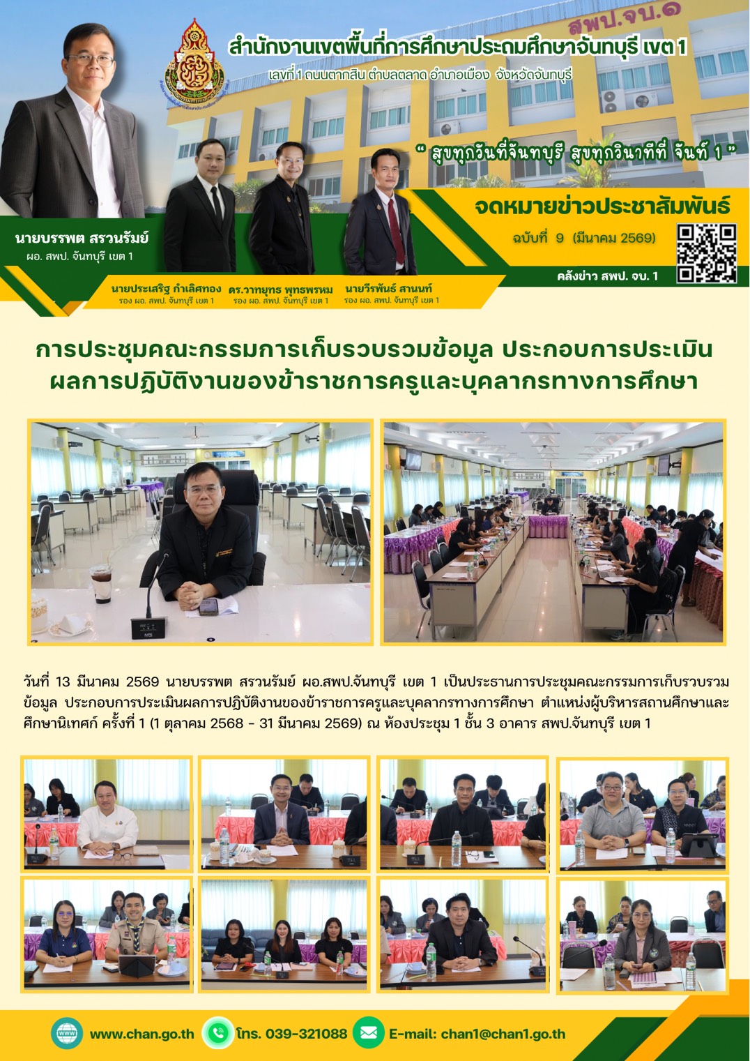 ฉบับที่ 30 วันที่ 18 มี.ค. 2569 ประชุมคณะกรรมการและคณะทำงานการติดตาม ประเมินผล การบริหารและการจัดการศึกษาขั้นพื้นฐานของสพฐ. ประจำปีงบประมาณ พ.ศ. 2569 กลุ่มนโยบายและแผน 19 มี.ค 2569 2