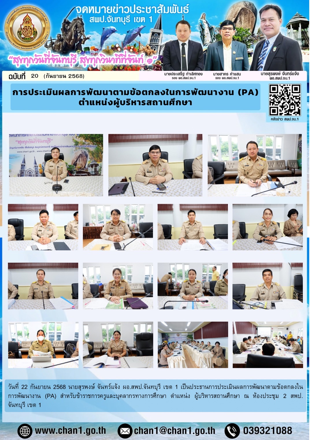 การประเมินผลการพัฒนาตามข้อตกลงในการพัฒนางาน (PA) ตำแหน่งผู้บริหารสถานศึกษา ฉบับที่ 20 ประจำเดือนกันยายน 2568