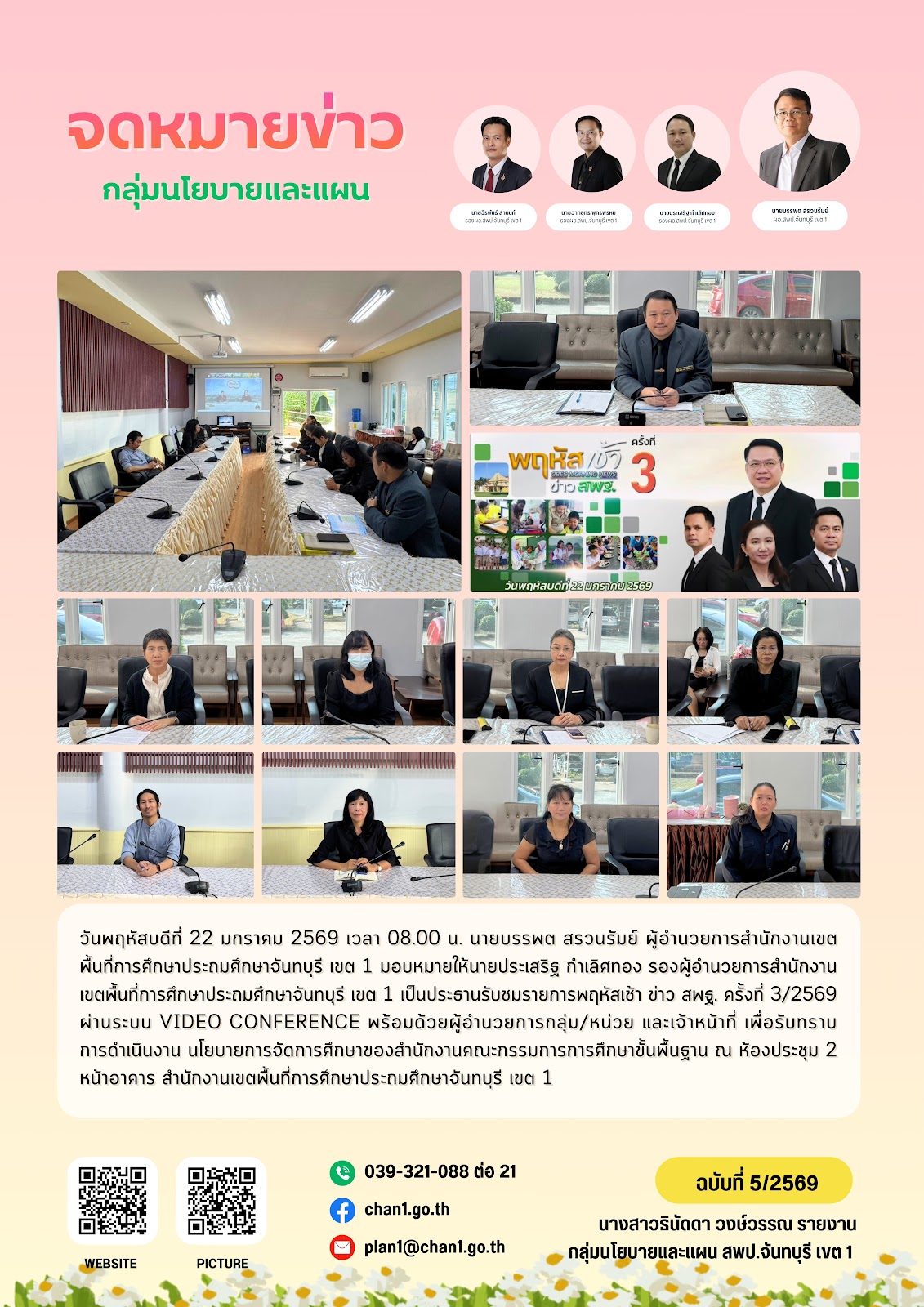 ฉบับที่ 7 วันที่ 29 ม.ค. 2569 ประชุมทบทวนแผนปฏิบัติการประจำปีงบประมาณ พ.ศ. 2569 กลุ่มนโยบายและแผน 30 ม.ค 2569 2