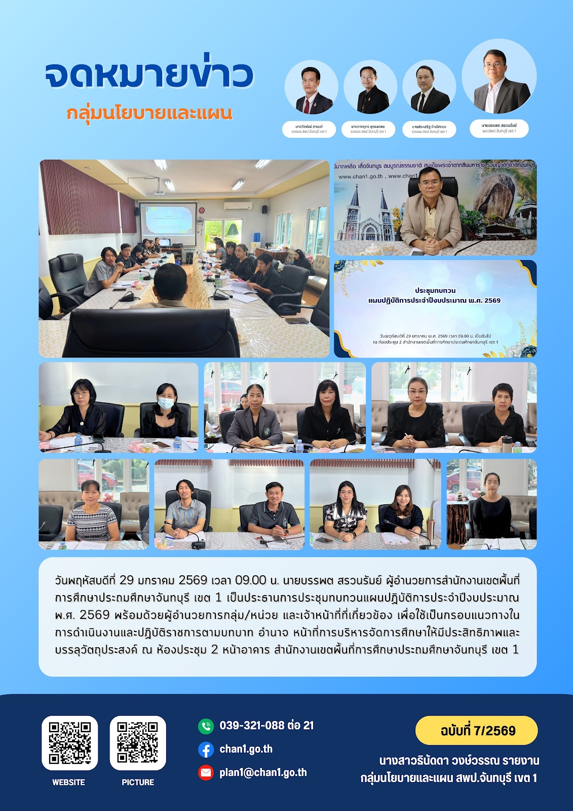 ฉบับที่ 7 วันที่ 29 ม.ค. 2569 ประชุมทบทวนแผนปฏิบัติการประจำปีงบประมาณ พ.ศ. 2569 กลุ่มนโยบายและแผน 30 ม.ค 2569 2