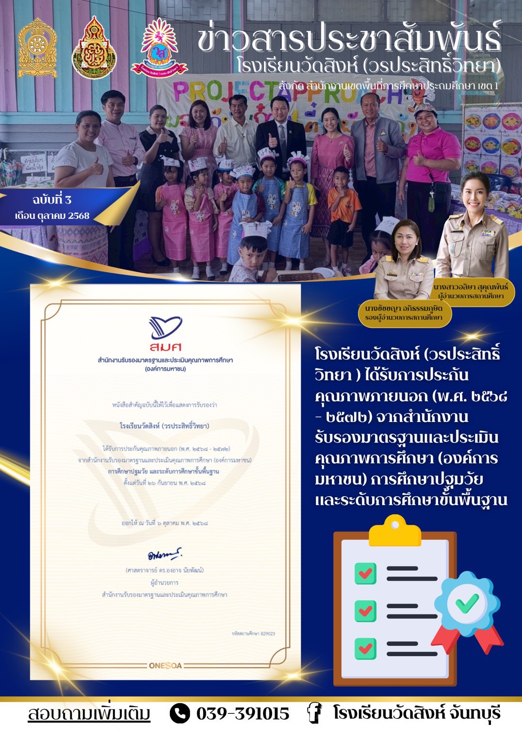 โรงเรียนวัดสิงห์ฯ ได้รับกาประกันคุณภาพภายนอก (พ.ศ. 2568 - 2572) นิเทศก์ News คลินิกวิชาการสารสัมพันธ์ ปีที่ 3 ฉบับที่ 29| กลุ่มนิเทศฯ สพป.จันทบุรี เขต 1 6 พ.ย 2568 · 100 คลินิกวิชาการสารสัมพันธ์ ปีที่ 3 ฉบับที่ 28 | กลุ่มนิเทศฯ สพป.จันทบุรี เขต 1 22 ต.ค 2568 · 100 คลินิกวิชาการสารสัมพันธ์ ปีที่ 3 ฉบับที่ 27 | กลุ่มนิเทศฯ สพป.จันทบุรี เขต 1 8 ต.ค 2568 · 100 คลินิกวิชาการสารสัมพันธ์ ปีที่ 3 ฉบับที่ 26 | กลุ่มนิเทศฯ สพป.จันทบุรี เขต 1 8 ต.ค 2568 · 100 คลินิกวิชาการสารสัมพันธ์ ปีที่ 3 ฉบับที่ 25 | กลุ่มนิเทศฯ สพป.จันทบุรี เขต 1 18 ก.ย 2568 · 100 อบรมทำสื่อประวัติศาสตร์ท้องถิ่นด้วยเทคโนโลยี Ai 23 ก.ย 2568 · 100 คลินิกวิชาการสารสัมพันธ์ ปีที่ 3 ฉบับที่ 24 | กลุ่มนิเทศฯ สพป.จันทบุรี เขต 1 8 ต.ค 2568 · 100 C Shop Fair 2025 โครงการประกวดแข่งขันสุดยอดไอเดียอาชีพสร้างรายได้ระหว่างเรียน (Learn to Earn) 26 ส.ค 2568 · 100 ประวัติความเป็นมาของการเรียนรู้โดยใช้โครงงานเป็นฐาน (Project-Based Learning: PBL) 15 ส.ค 2568 · 100 คลินิกวิชาการสารสัมพันธ์ ปีที่ 3 ฉบับที่ 23 | กลุ่มนิเทศฯ สพป.จันทบุรี เขต 1 28 ส.ค 2568 · 100 ข่าวประชาสัมพันธ์ สพป.จันทบุรี เขต 1 การพิจารณากลั่นกรองคุณสมบัติข้าราชการครูและบุคลากร ทางการศึกษาเพื่อเสนอพระราชทานเครื่องราชอิสริยาภรณ์ ฉบับที่ 12 ประจำเดือนพฤศจิกายน 2568 การพิจารณาคัดเลือกครูให้ได้รับรางวัล "บุคลากรการศึกษาจันท์ดีเด่น" ประจำปีงบประมาณ พ.ศ. 2568 ฉบับที่ 11 ประจำเดือนพฤศจิกายน 2568 สพป. จันทบุรี เขต 1 ร่วมพิธีบำเพ็ญกุศล ในวาระครบ 15 วัน (ปัณรสมวาร) สมเด็จพระนางเจ้าสิริกิติ์ฯ ฉบับที่ 10 ประจำเดือนพฤศจิกายน 2568 การประชุมคณะกรรมการศึกษาธิการจังหวัดจันทบุรี ฉบับที่ 9 ประจำเดือนพฤศจิกายน 2568 เนื้อหาที่น่าสนใจ คณะผู้บริหาร รองผู้อำนวยการสถานศึกษาพร้อมด้วยคณะครู น้อมกราบถวายมุทิตาสักการะ เนื่องในโอกาสอายุวัฒนมงคลพระครูสิงหเขต คุณากร 12 พ.ย 2568 กิจกรรมวันลอยกระทง 12 พ.ย 2568 โรงเรียนวัดสิงห์ฯ ได้รับกาประกันคุณภาพภายนอก (พ.ศ. 2568 - 2572) 12 พ.ย 2568 กิจกรรมตักบาตรข้าวสารอาหารแห้ง เนื่องในวันออกพรรษาประจำปี 2568 12 พ.ย 2568