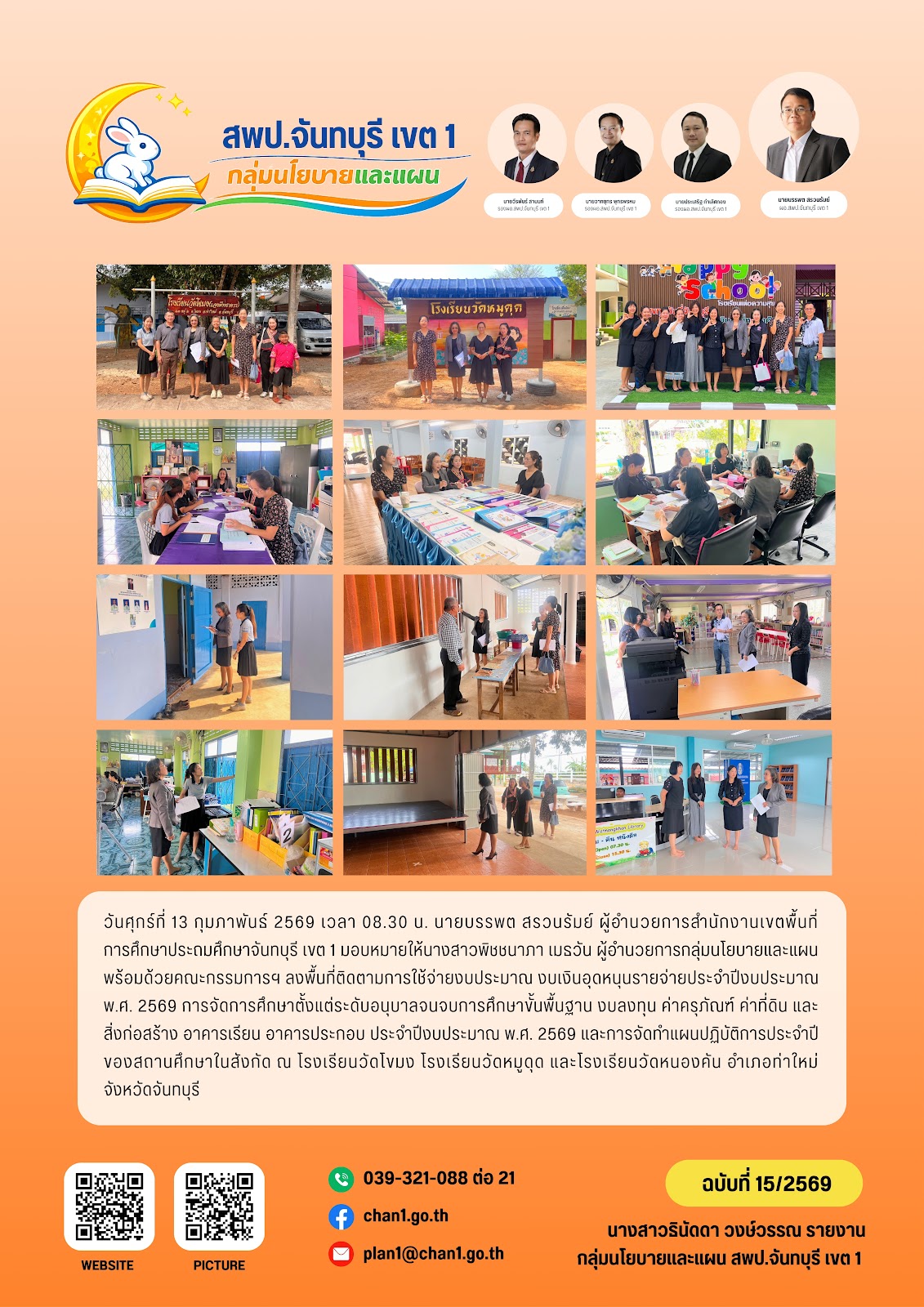ฉบับที่ 15 วันที่ 13 ก.พ. 2569 ลงพื้นที่ติดตามการใช้จ่ายงบประมาณ งบเงินอุดหนุนรายจ่ายประจำปีงบประมาณ พ.ศ. 2569 กลุ่มนโยบายและแผน 13 ก.พ 2569 2