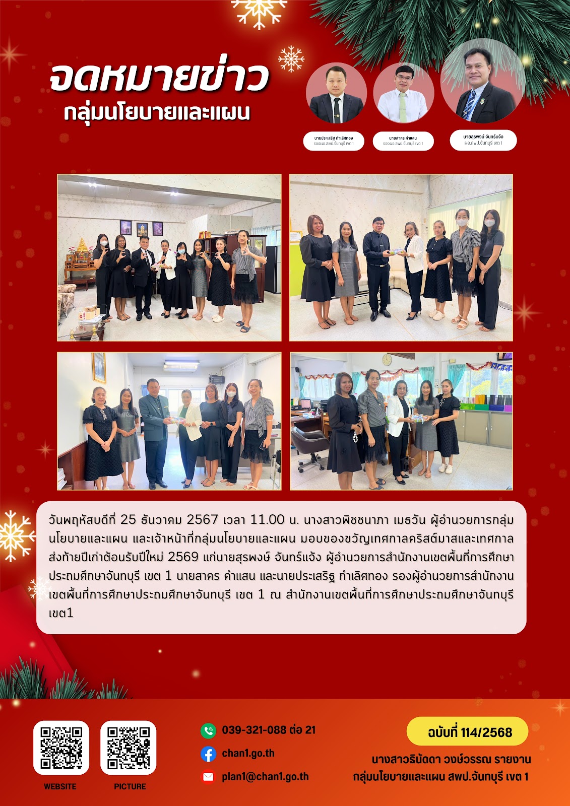 ฉบับที่ 114 วันที่ 25 ธ.ค. 2568 มอบของขวัญเทศกาลคริสต์มาสและส่งท้ายปีเก่าต้อนรับปีใหม่ 2569 กลุ่มนโยบายและแผน 26 ธ.ค 2568 2